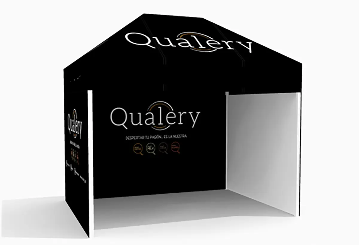 Qualery necesitaba una carpa promocional resistente, elegante y fácil de montar para representar su marca en distintos puntos de venta, ferias de vending, promociones de café y acciones de visibilidad para hostelería. La clave era lograr una estética cuidada que reflejara su posicionamiento premium, sin comprometer la funcionalidad ni la resistencia al uso intensivo.