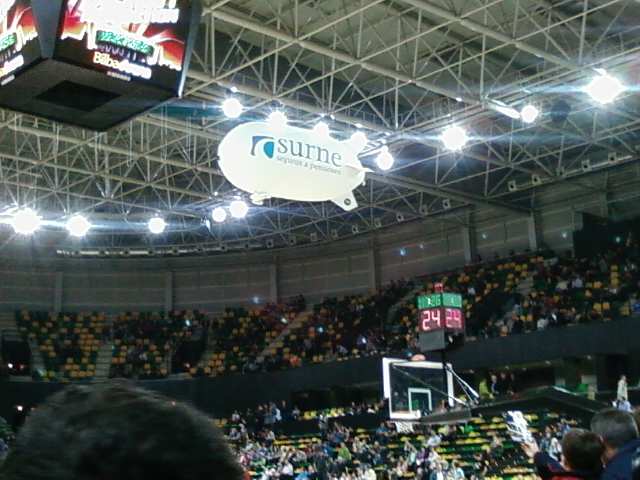 Diseñamos y fabricamos un dirigible por control remoto de 4,5 metros de largo, completamente personalizado con los logotipos de Surne y del Bilbao Basket.