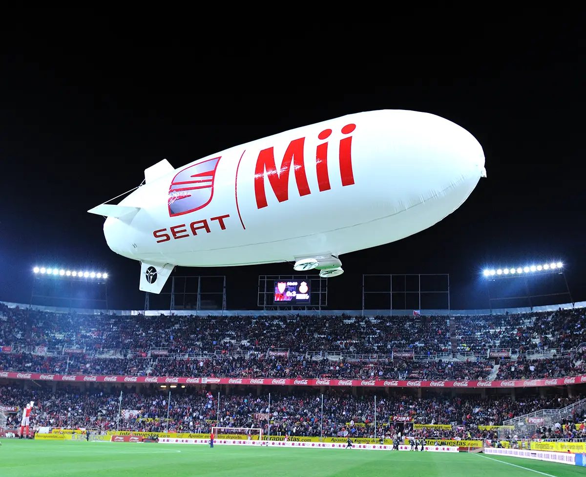 Uno de los eventos más destacados fue en el Estadio Ramón Sánchez Pizjuán (Sevilla), donde el zeppelín voló sobre el césped antes del partido, generando atención en todo el recinto.