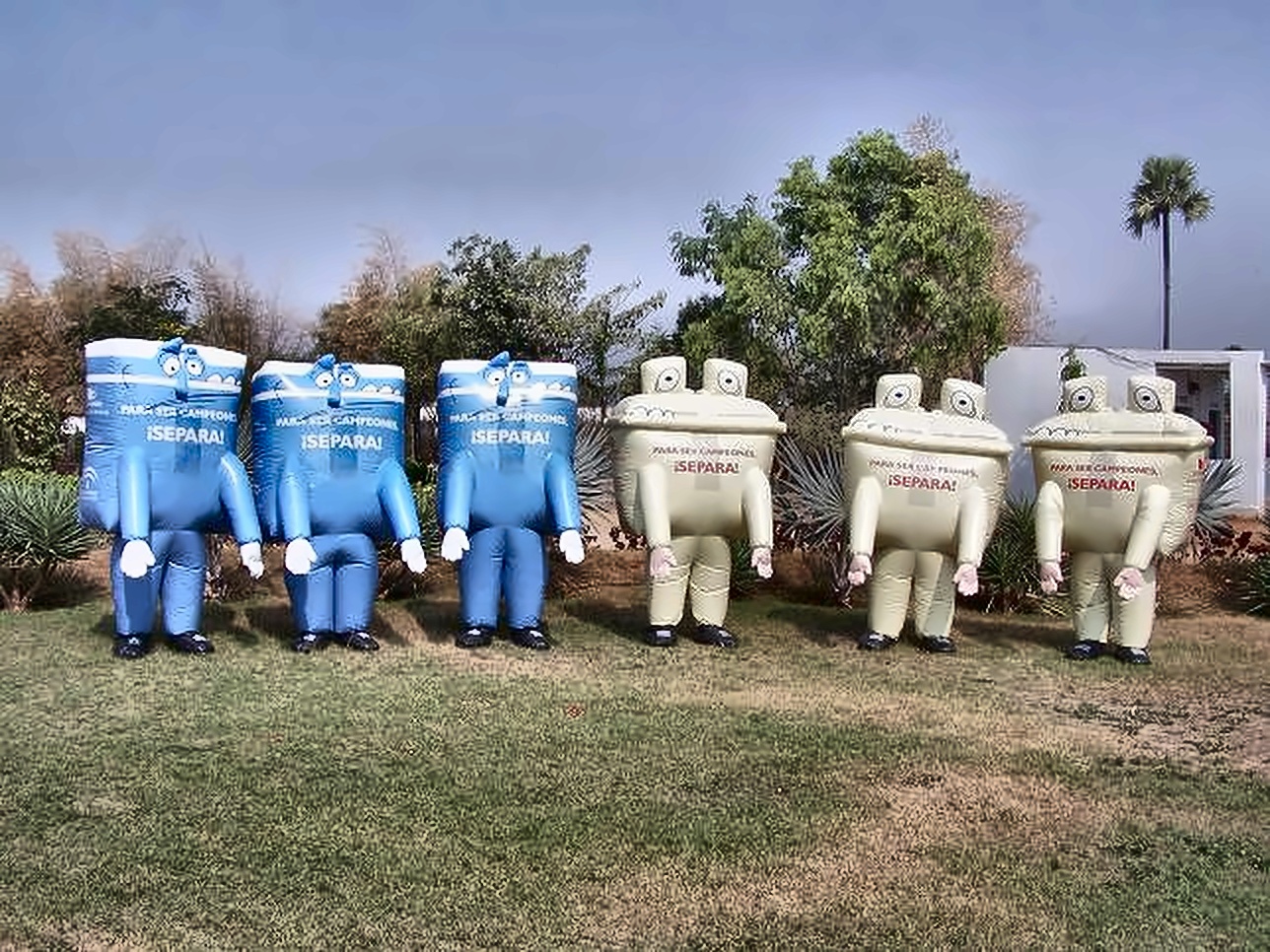 Los disfraces se inflan con un sistema de aire integrado (ventilador), alimentado por batería o por conexión a red según el diseño y el uso previsto. Te asesoramos sobre la opción más adecuada en función del tipo de acción (estática, itinerante, pases por horarios, etc.).