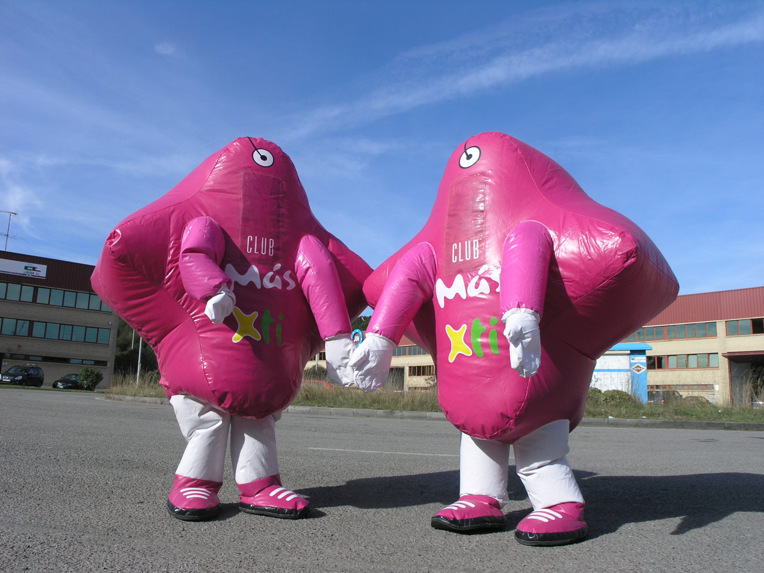 Personajes hinchables recorriendo calles, plazas, playas, centros comerciales o zonas de evento, interactuando con el público, repartiendo muestras o invitando a participar en una dinámica.